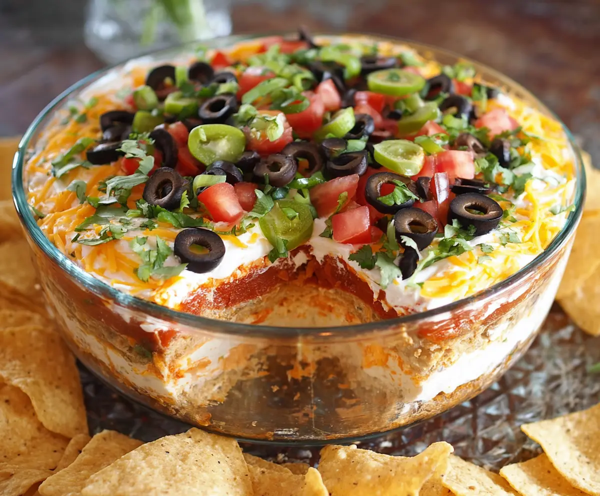 You can serve it with tortilla chips, and let’s be real: trying to scoop up all those layers is half the fun! I love how it disappears quickly at gatherings—everyone just can’t resist! 🎉