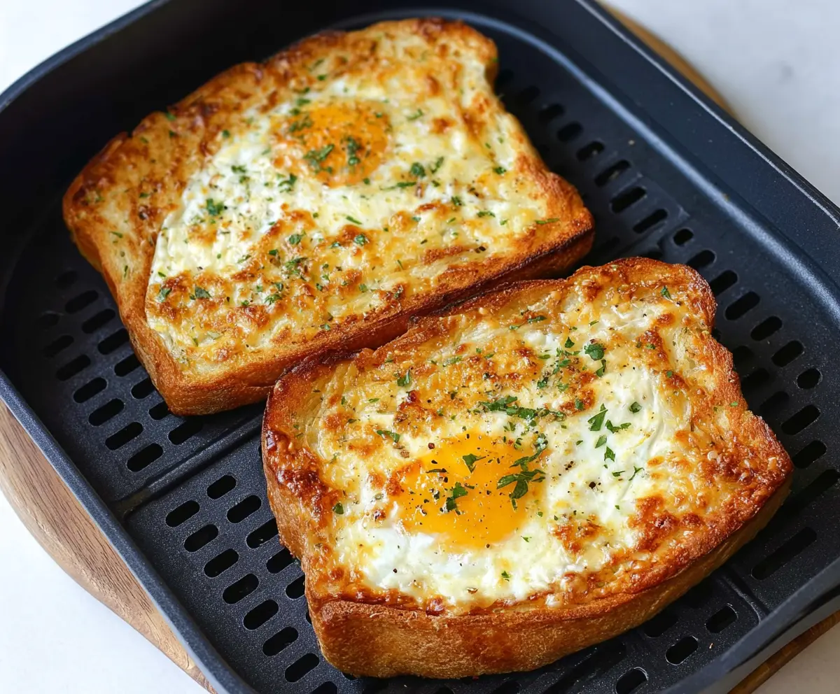The egg is the star of this dish and deserves special attention. To get the perfect egg, crack it gently into the hole in the toast so the yolk stays intact. This keeps it sunny-side up while air frying.