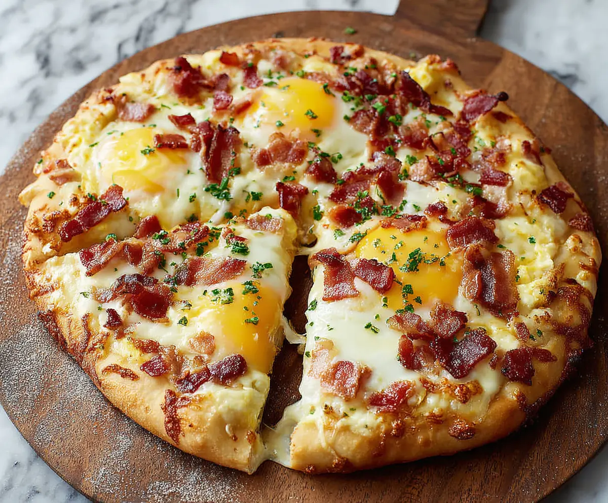 Perfect for gatherings or a special breakfast at home, this Bacon Egg Breakfast Pizza is sure to be a hit!