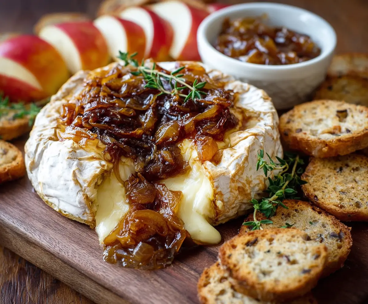 This Baked Brie with Caramelized Onions is a lovely treat! The soft, creamy cheese pairs perfectly with the sweet, tender onions, creating a warm, gooey delight.