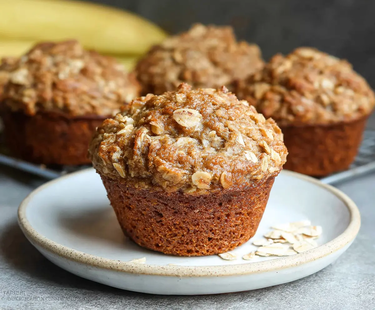 Healthy banana oat muffins fresh out of the oven, perfect for a nutritious breakfast or snack.