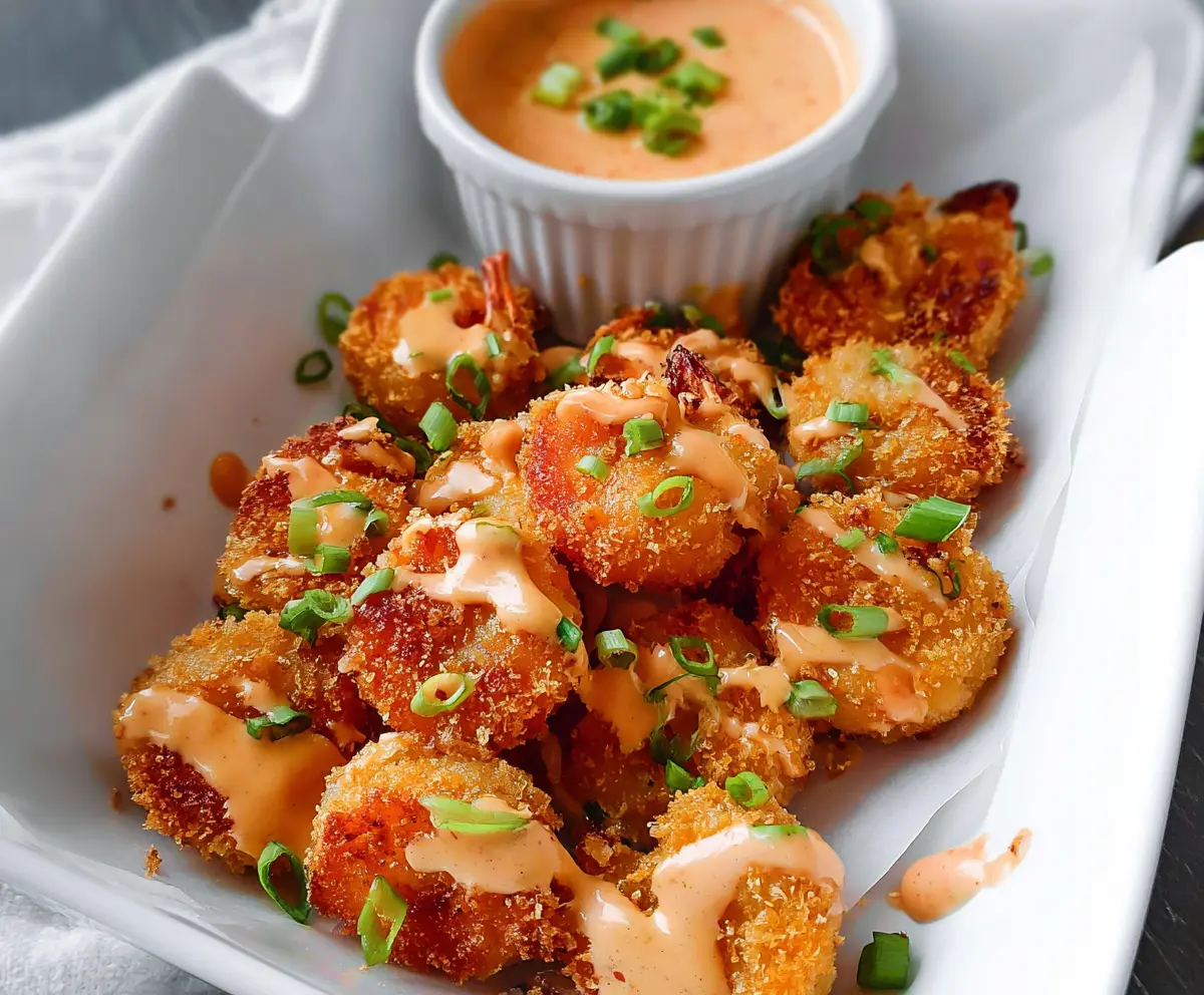 Bang Bang Shrimp Bites are crunchy, spicy little pieces of shrimp that pack a punch! They are coated in a creamy, zesty sauce that makes them super tasty. Perfect for sharing or snacking!