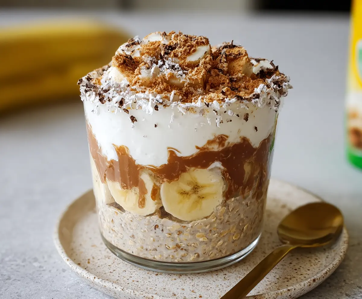 Banoffee Pie Overnight Oats are a yummy way to start your day! With creamy bananas, sweet toffee, and crunchy oats, they taste just like dessert for breakfast.