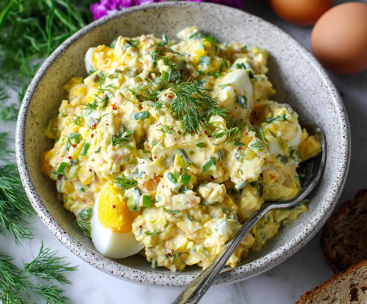 Enjoy your creamy, flavorful, and low-calorie egg salad full of protein! This dish is not only nutritious but also easy to prepare, making it a fantastic addition to your meal rotation.