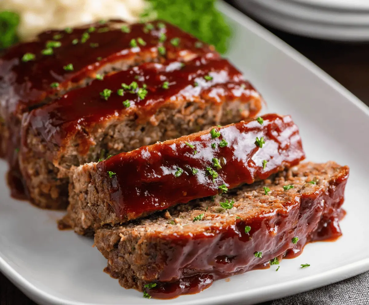 Garnish with fresh parsley before slicing. Serve warm, perhaps with some creamy mashed potatoes or a green vegetable. Enjoy your delicious, moist BBQ Glazed Meatloaf—a meal that’s sure to satisfy!