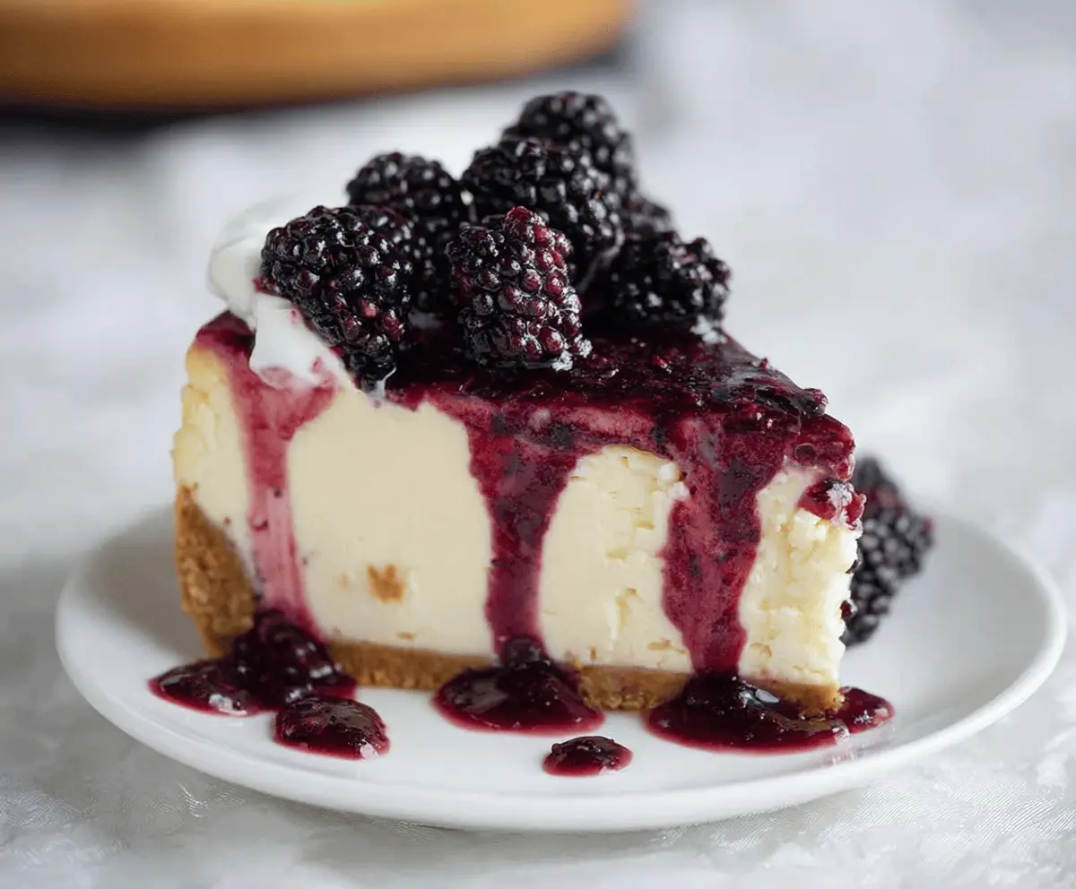 When you’re ready to serve, carefully remove the cheesecake from the springform pan. Garnish with fresh blackberries and mint leaves if you desire. Slice it up, and behold the creamy, berry-filled delight!