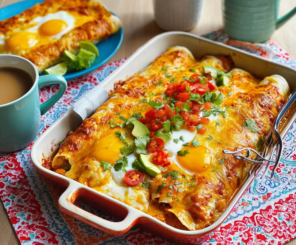 These breakfast enchiladas are a tasty way to start your day! With scrambled eggs, cheese, and a zesty sauce wrapped in tortillas, they are packed with flavor and goodness.