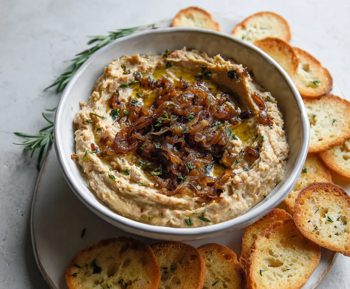 This creamy dip combines sweet, caramelized onions and white beans for a tasty treat. It’s smooth, rich, and perfect for sharing with friends or family!