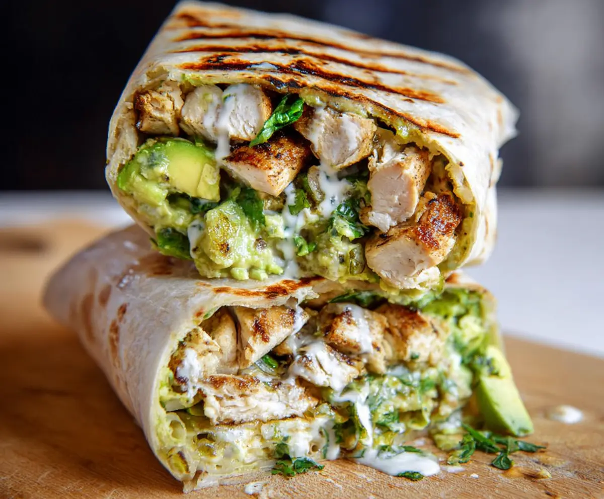 Warm the flour tortillas for a few seconds in the microwave or on the skillet to make them easier to roll. Spread a generous layer of the avocado mixture on each tortilla. Then, lay down the sliced chicken on top of the avocado mix. Don’t forget to drizzle some Greek yogurt or sour cream over the chicken for added creaminess and flavor.