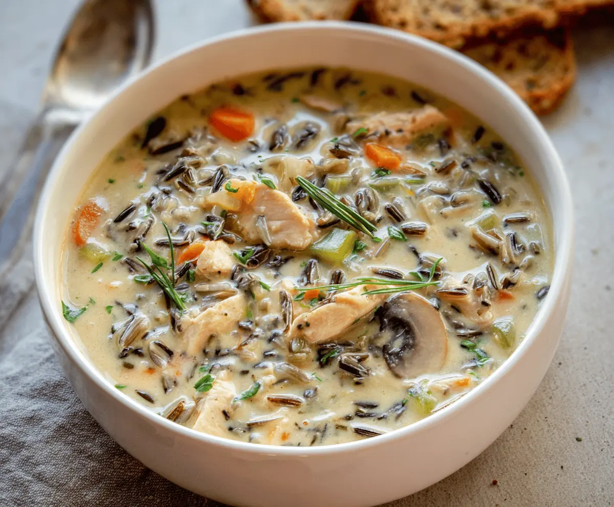 This creamy chicken wild rice soup is a wonderful blend of flavors and textures, perfect for warming you up. Enjoy every comforting spoonful!