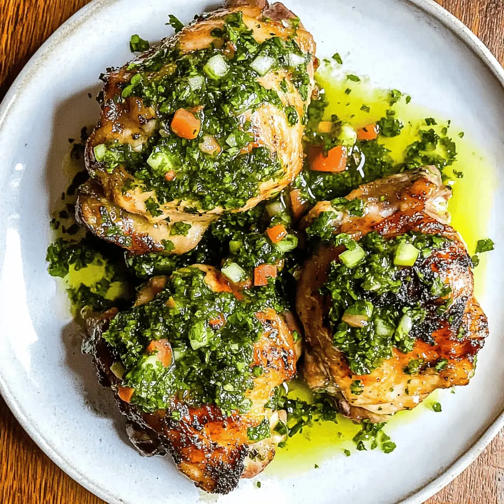 After cooking, remove the chicken thighs from the heat and let them rest for a few minutes. This helps keep them juicy! Serve them warm, generously topped with your delicious chimichurri sauce.