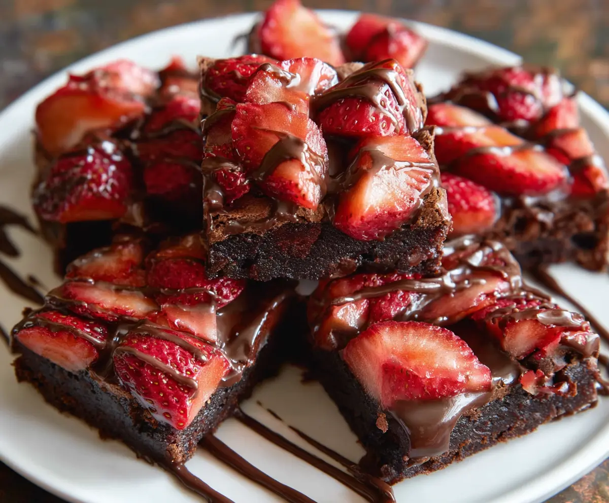 This recipe gives you rich, fudgy brownies topped with a luscious chocolate layer and fresh strawberries—a beautiful and tasty treat that everyone will love!