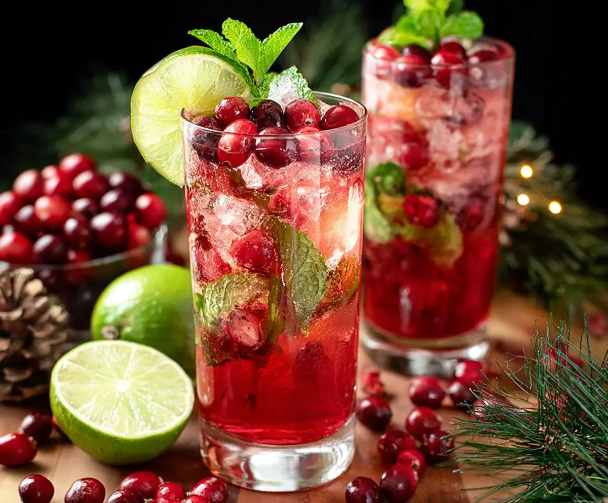 To make your drink look festive, garnish with a sprig of fresh mint, a slice of lime on the rim, and a few cranberries floating on top. It’s all about that holiday cheer!