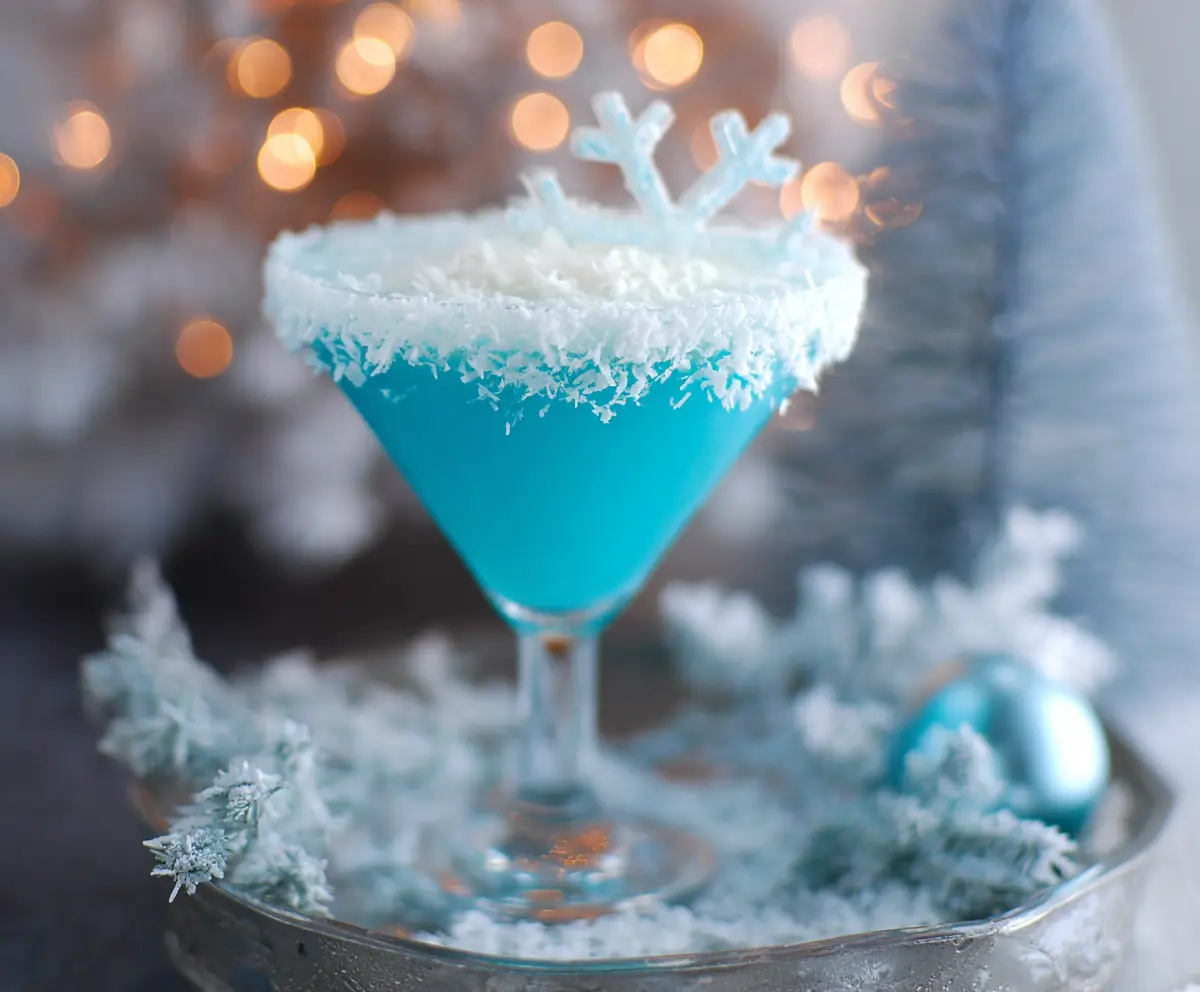 To make it extra special, garnish your cocktail with a clear or white snowflake decoration placed gently on top or resting on the rim. This will give it that perfect holiday touch!