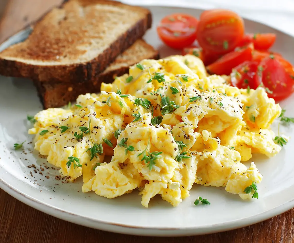 Enjoy your fluffy, creamy Cottage Cheese Scrambled Eggs!