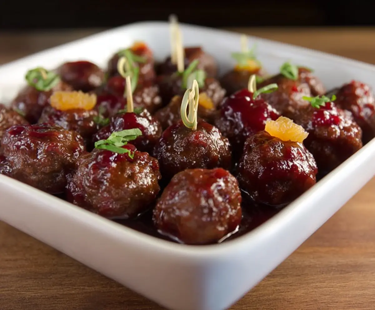 If you want to make your meatballs look festive, garnish each one with a fresh cranberry and a small sprig of rosemary. You can secure them with a toothpick for an easy grab-and-go option.