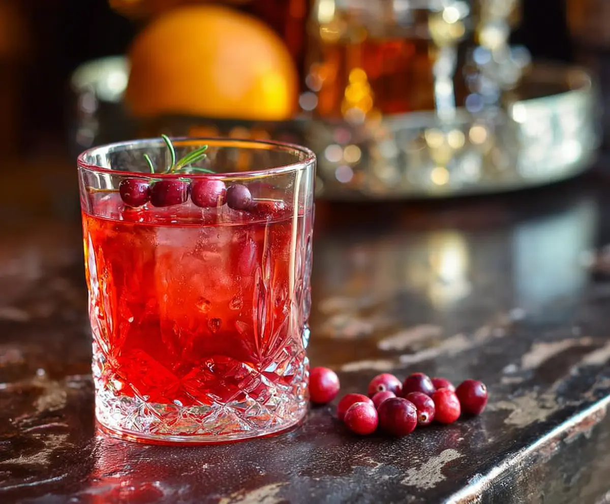 To finish, garnish your drink with a few fresh cranberries and a twist of orange peel. The orange peel adds a lovely citrus aroma that enhances the cocktail experience.