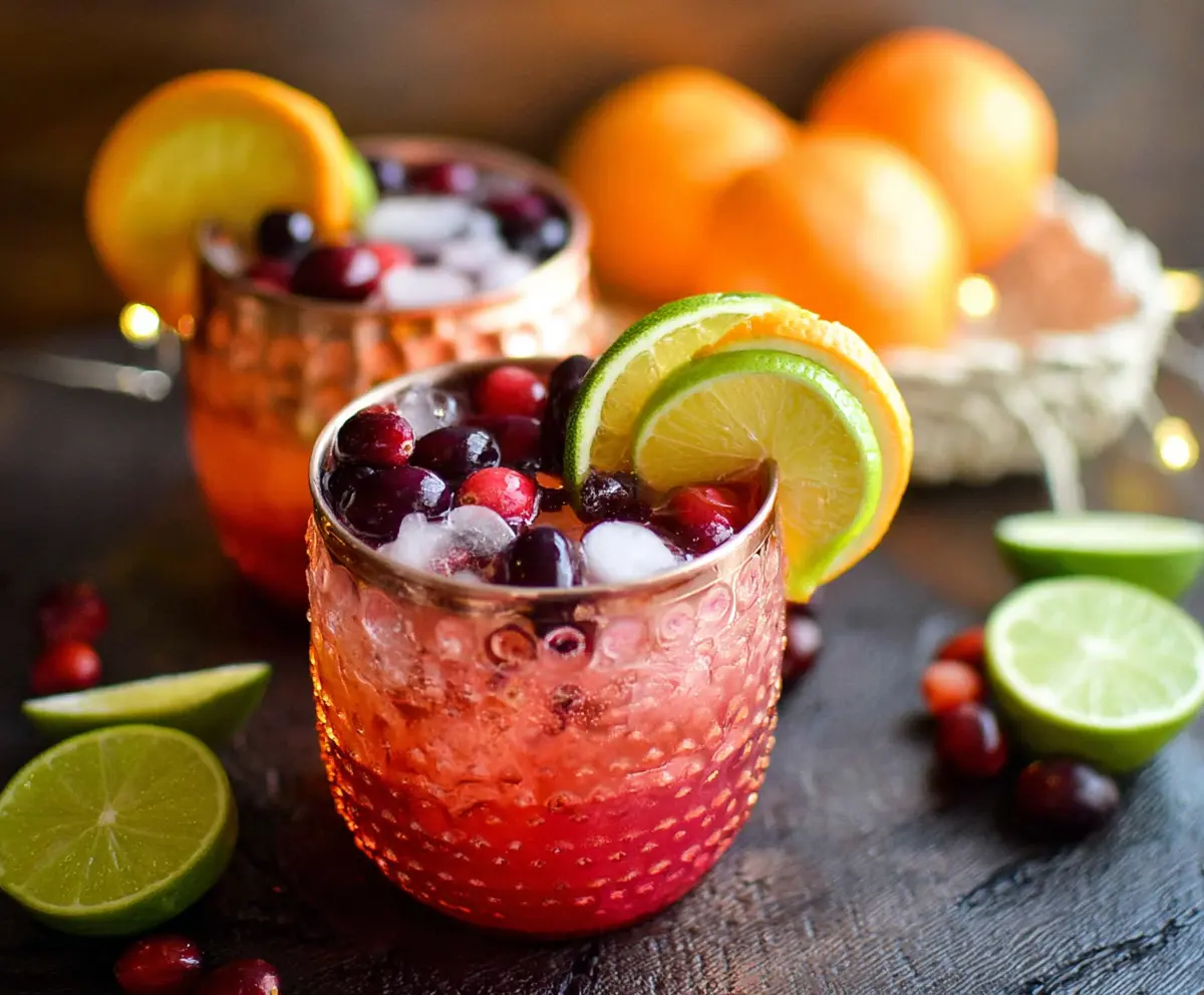 This fun twist on the classic Moscow Mule brings together bright cranberry and zesty orange. With ginger beer, it’s fizzy and refreshing, perfect for any celebration!