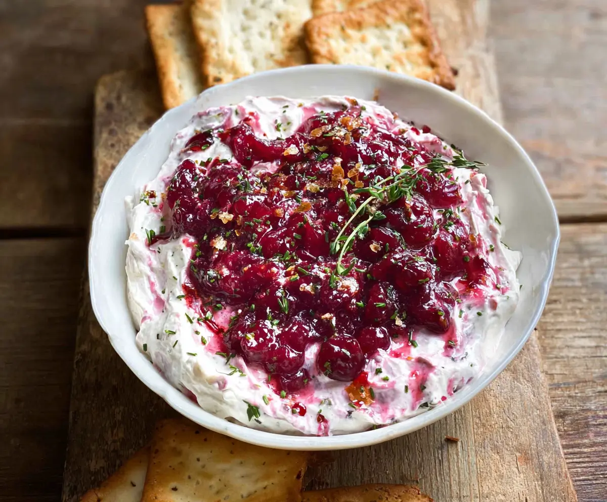 This festive dip combines smooth Boursin cheese with sweet-tart cranberries. It’s creamy, delicious, and perfect for holiday gatherings!