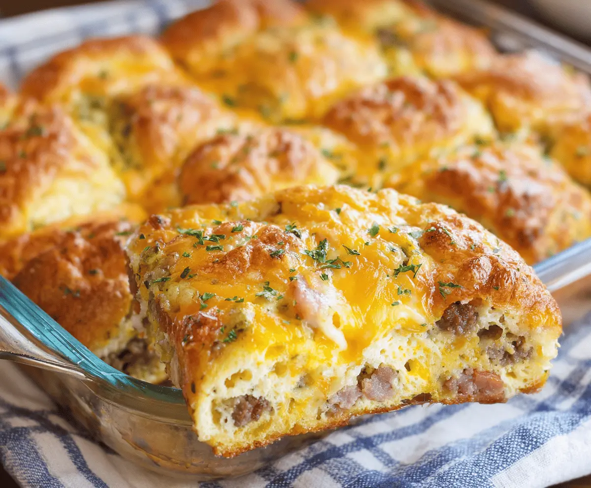 This Crescent Roll Breakfast Casserole is a warm and comforting dish perfect for lazy mornings. With fluffy eggs, savory sausage, and buttery crescent rolls, it’s a real treat!