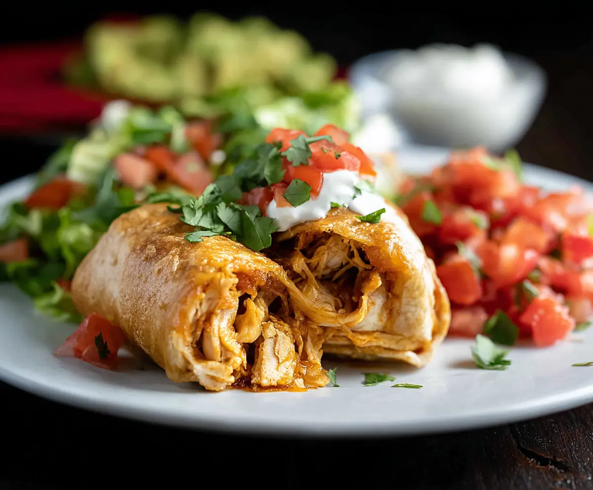 Serve your crispy chicken chimichangas warm with a side of extra sour cream or salsa for dipping. Enjoy every crunchy, flavorful bite—it’s a fiesta on your plate!