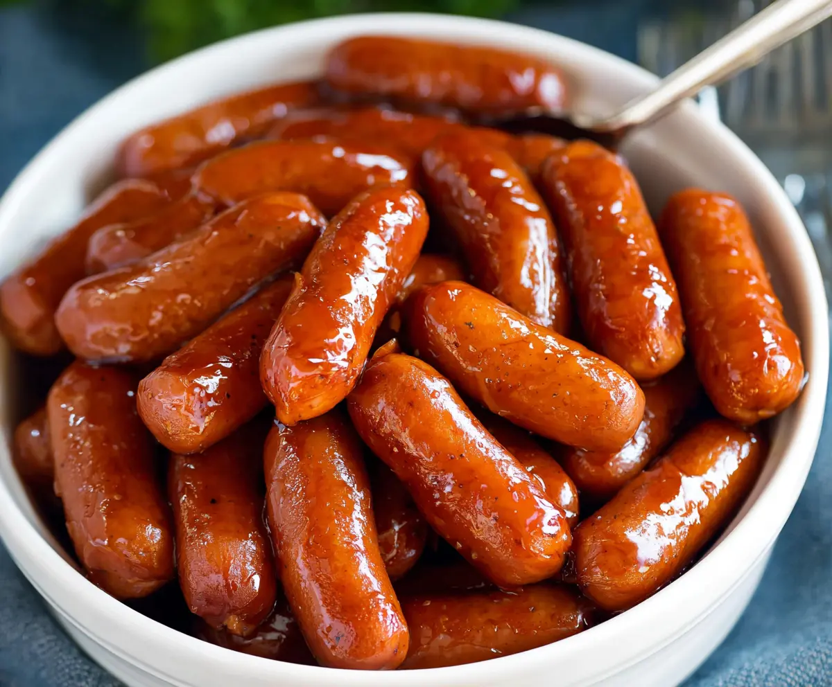 - 2 (14 oz) packages of cocktail sausages (little smokies)