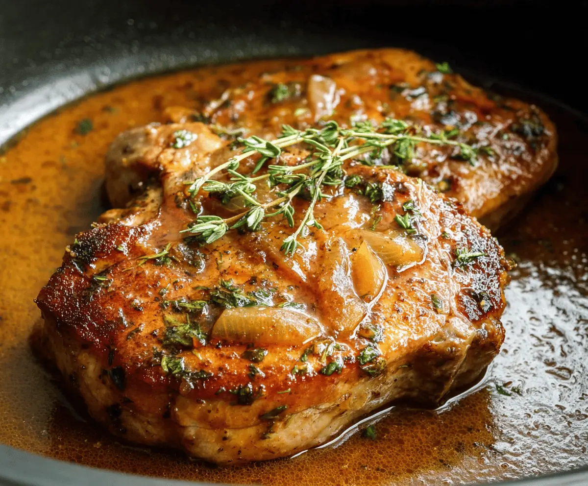 In a skillet, heat the olive oil over medium-high heat. Once hot, add the pork chops and sear them for about 3-4 minutes on each side until they’re nicely browned. This helps to lock in the juices and gives them a great color. Once done, remove the chops from the skillet and set them aside.