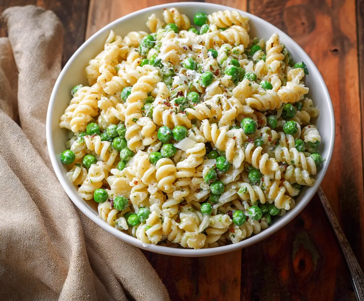 This English pea pasta salad is bright and fresh, perfect for a light lunch or a picnic. It’s made with tender pasta, sweet peas, and a zesty dressing that ties it all together!