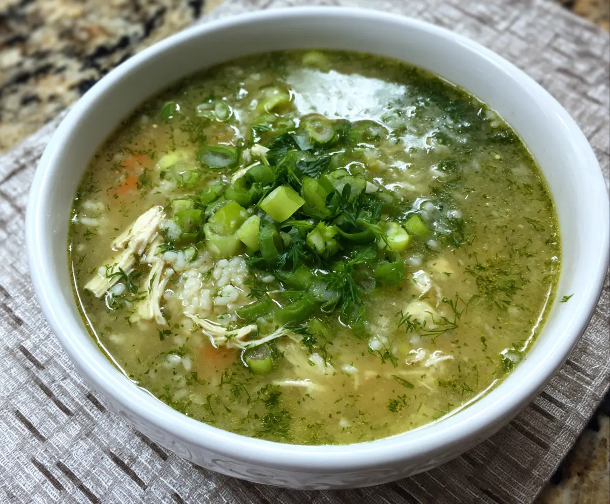 This comforting soup features tender chicken, fresh green garlic, and zesty ginger all simmered together with rice. It’s warm, satisfying, and perfect on chilly days!