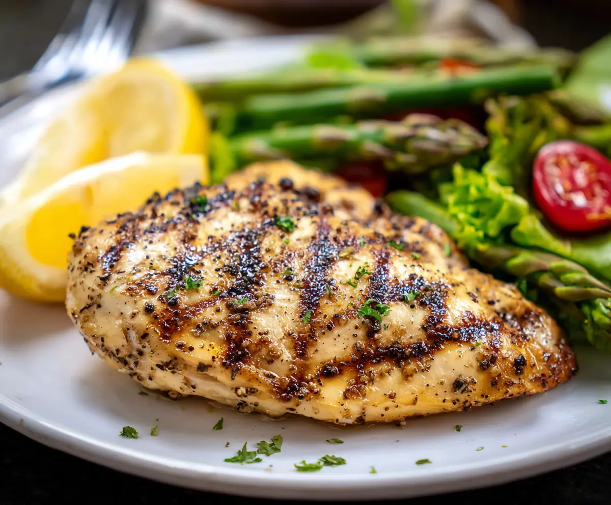 Now it’s time to serve! Arrange the grilled chicken breasts on a plate, topping them with the grilled lemon slices. If you’d like, sprinkle some fresh thyme or parsley on top for a pop of color. Serve it alongside mixed greens and cherry tomatoes for a fresh and balanced meal.