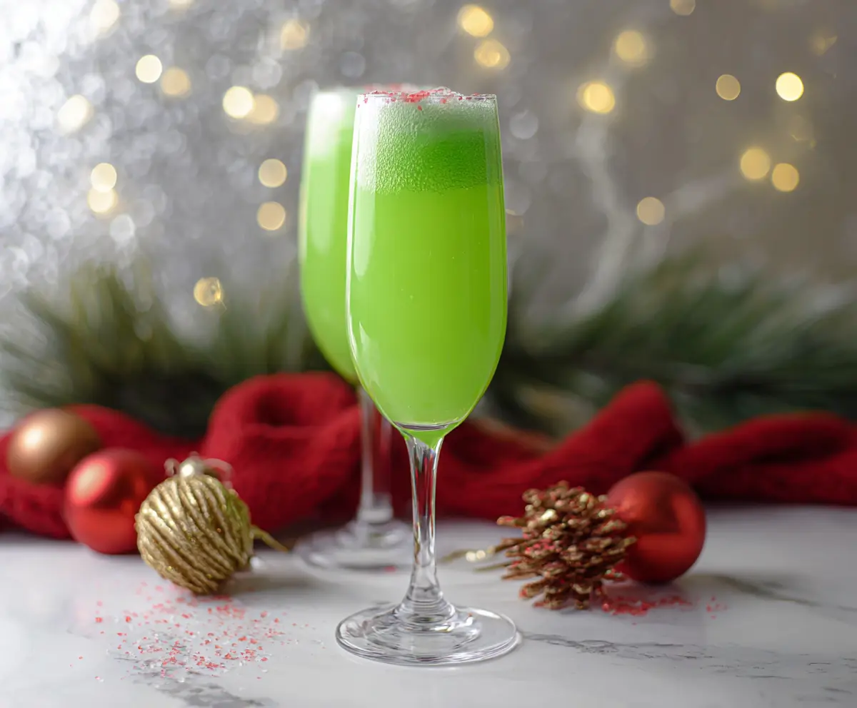 This bubbly cocktail is sure to impress at any holiday gathering, capturing the fun and spirited essence of the Grinch. Cheers! 🥂