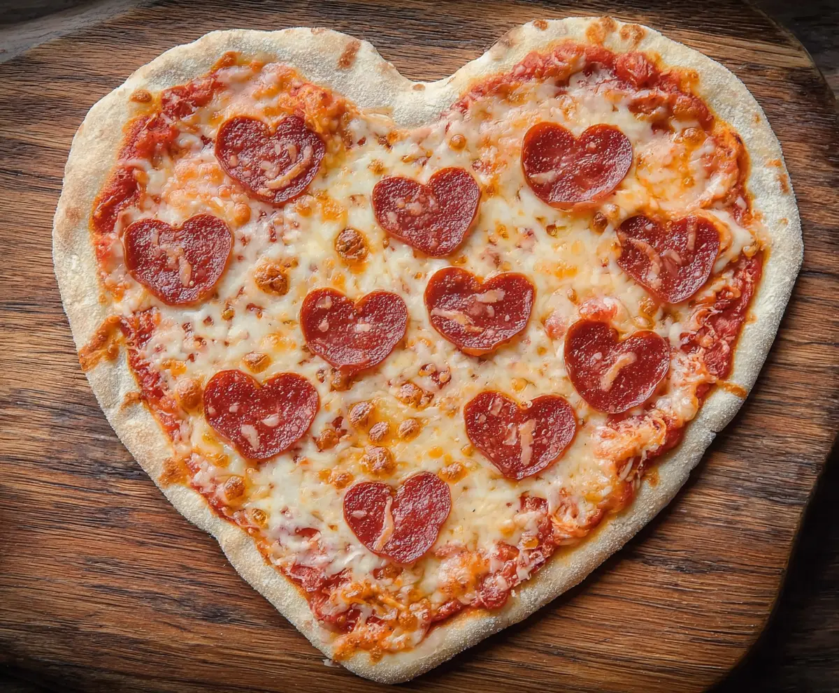 Enjoy this charming and delicious heart-shaped pepperoni pizza—it’s sure to bring a smile!