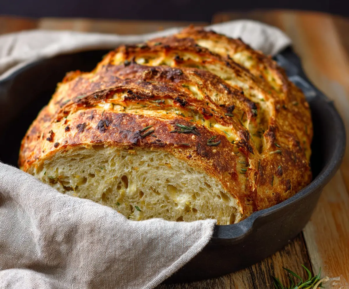 Delicious homemade Italian herb and cheese sourdough bread with golden crust and fragrant herbs.