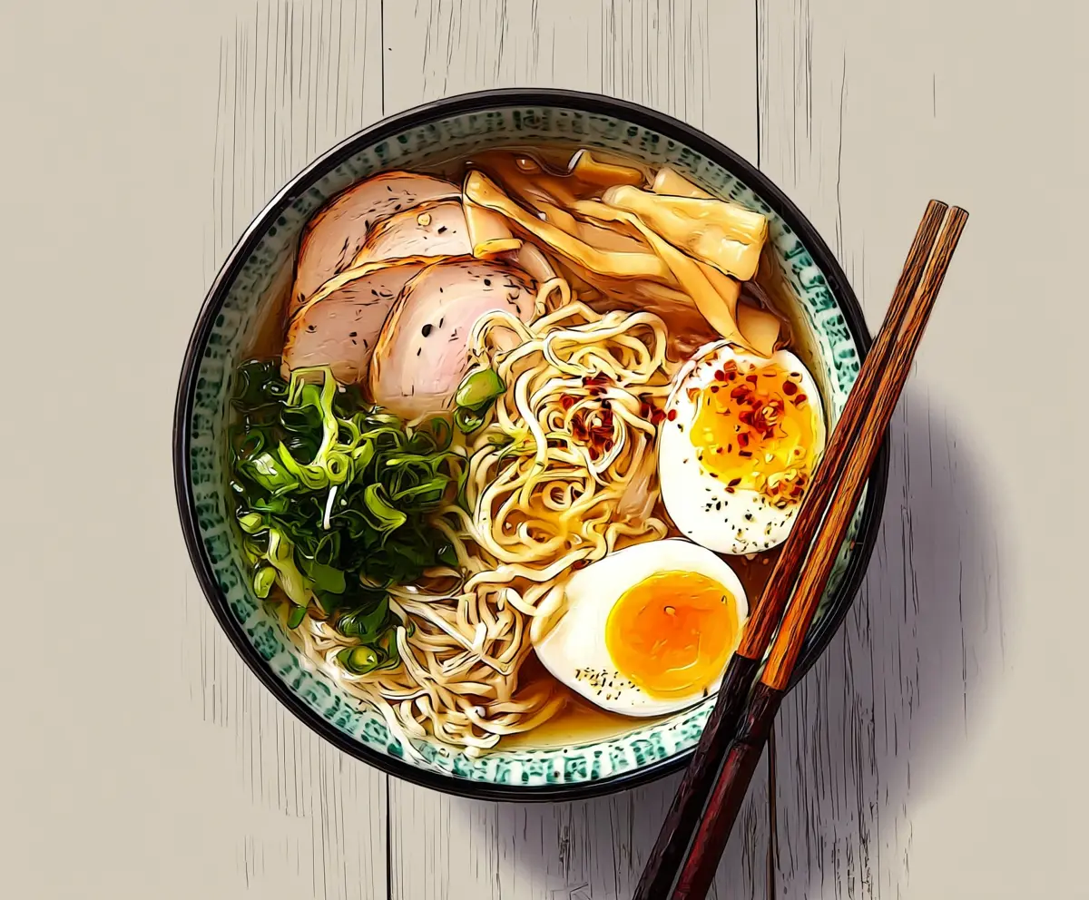 Japanese ramen noodles are a warm, comforting dish that you’ll love. With savory broth and tasty toppings like soft-boiled eggs and green onions, every bite is a treat!
