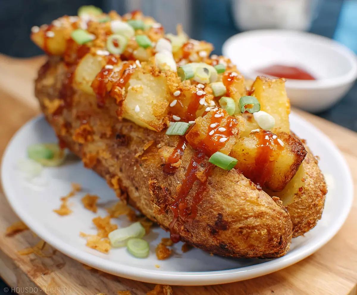 Korean Potato Hot Dog is a fun twist on a classic dish! It features a hot dog wrapped in a crunchy layer of crispy potato bits, making it extra tasty.
