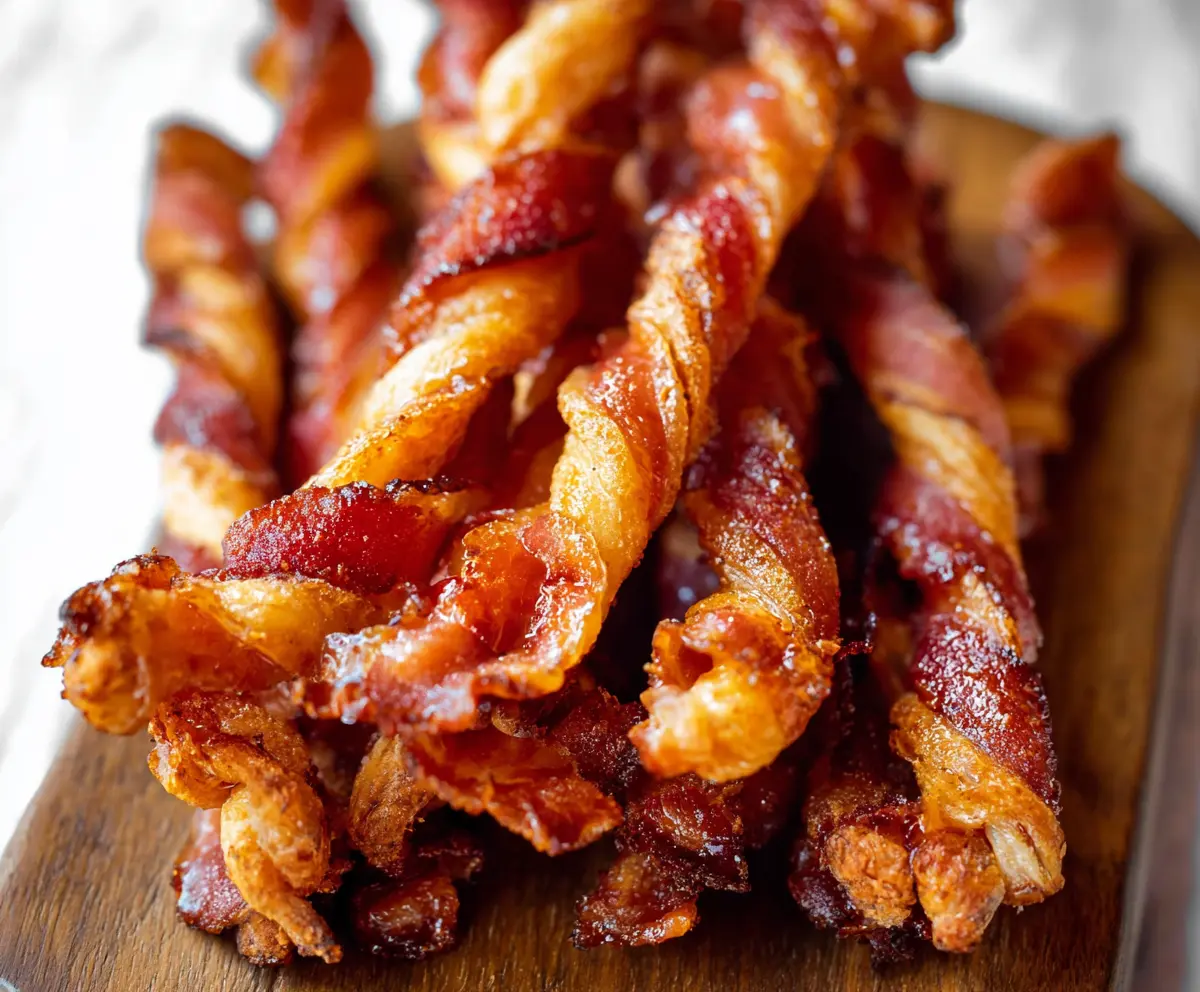 Absolutely! You can prepare and twist the bacon up to a day in advance. Simply cover and refrigerate them until you’re ready to bake. Just bring them to room temperature before popping them into the oven.