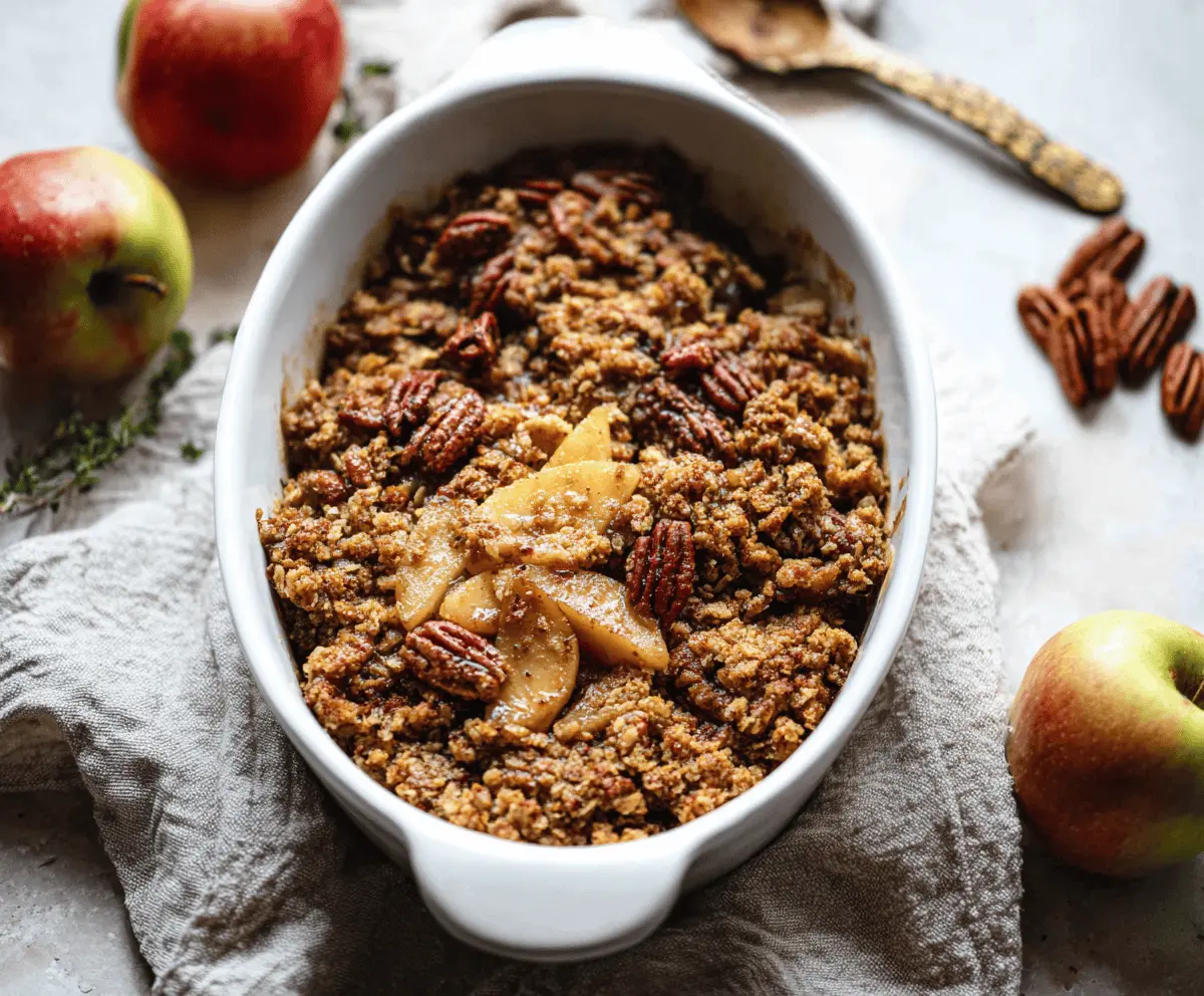 Yes! To make this Maple Pecan Apple Crisp vegan, simply substitute the unsalted butter with coconut oil or vegan butter. Also, ensure you’re using a maple syrup that is labeled as vegan. This will maintain the delicious flavor and texture!