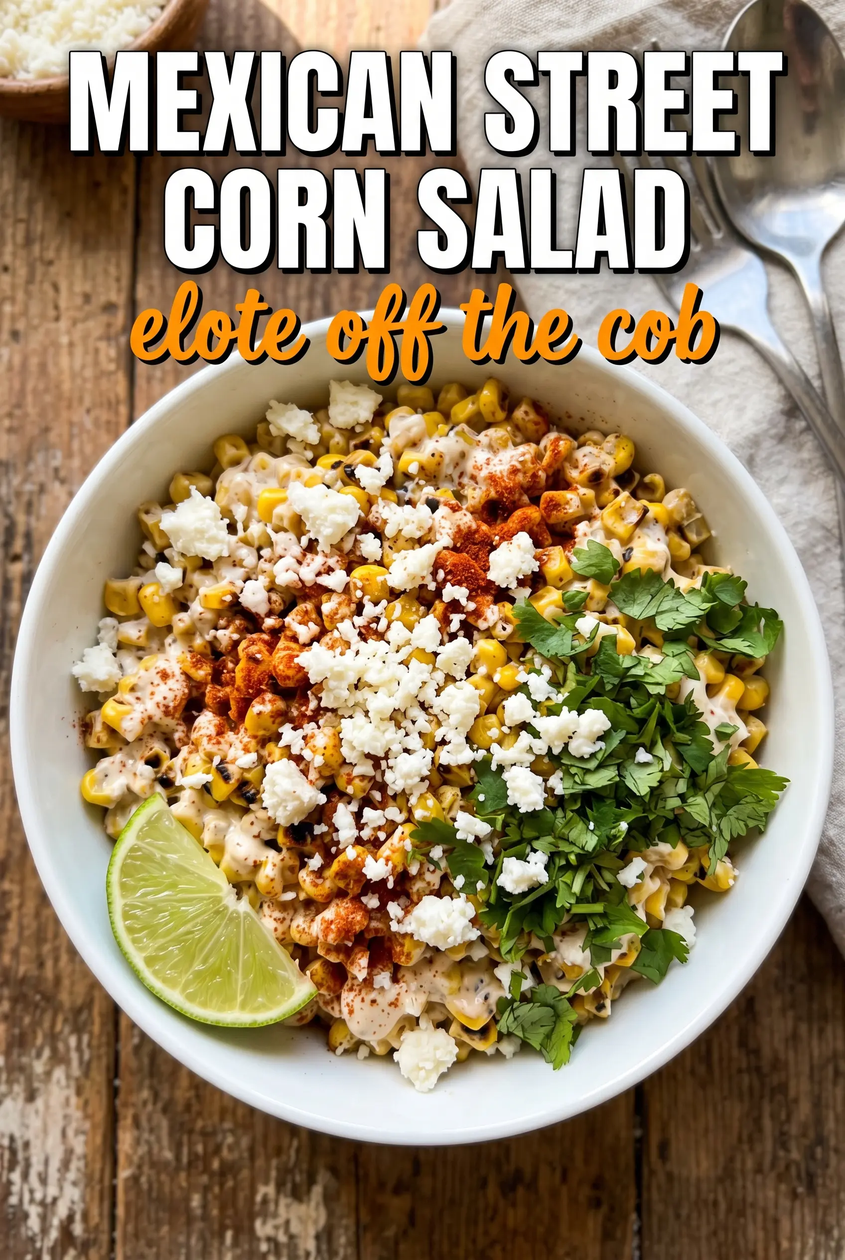 Save this Mexican street corn salad for taco nights, cookouts, and any time you want creamy elote flavor in a bowl.
