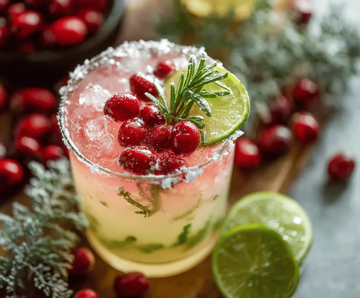 Now for the fun part! Garnish your Mistletoe Margarita with fresh cranberries, a couple of lime slices (pop them right in), and a sprig of rosemary and sage. This not only looks beautiful but also adds a lovely aroma.