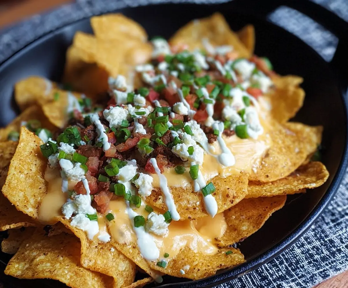 These nachos are perfect for game day or a cozy movie night! I love adding a dollop of sour cream on top—it makes every bite extra creamy and delicious. Yum!