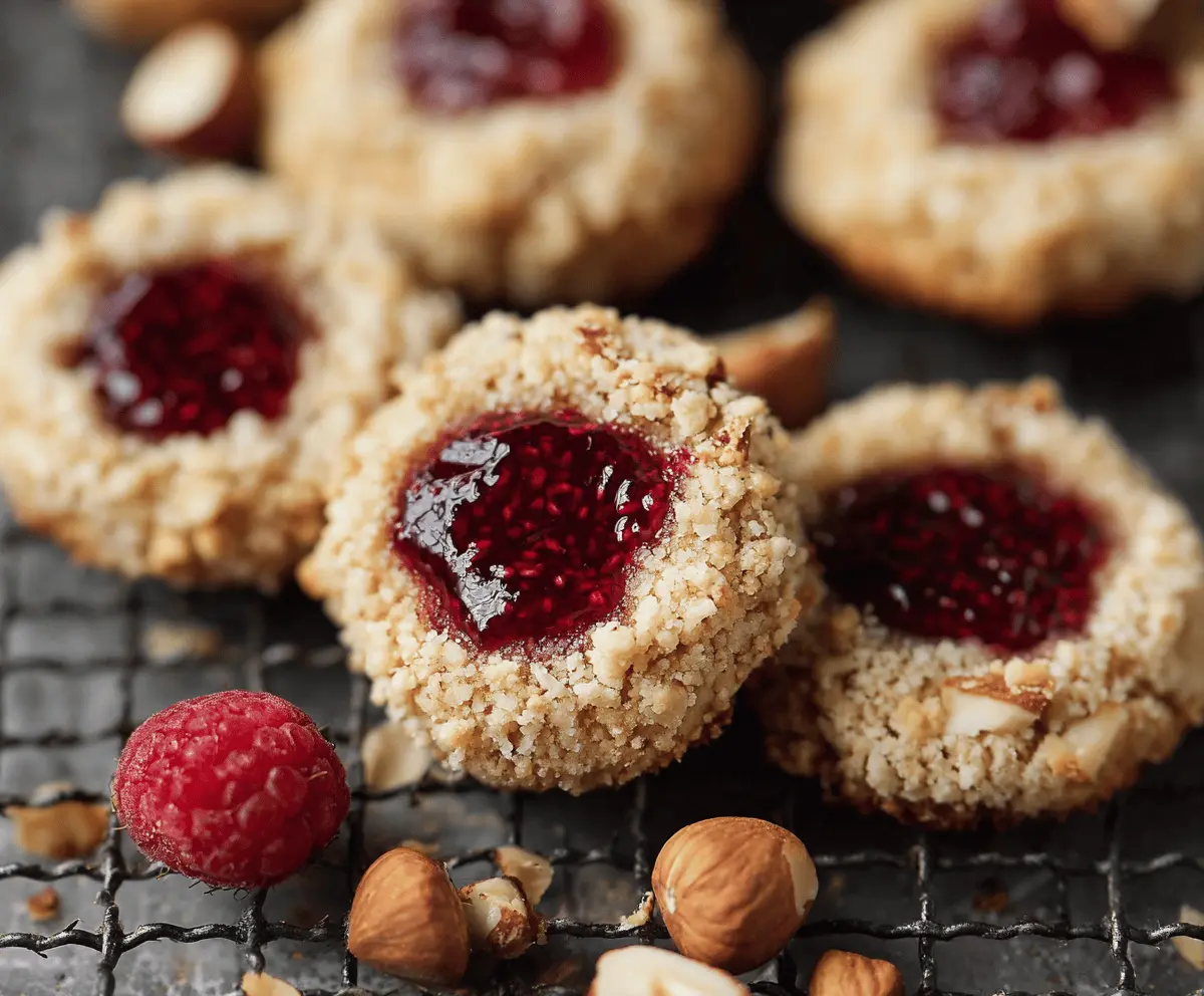 Enjoy your delightful raspberry and hazelnut thumbprint cookies with a warm drink or as a sweet treat any time! Happy baking! 🍪❤️