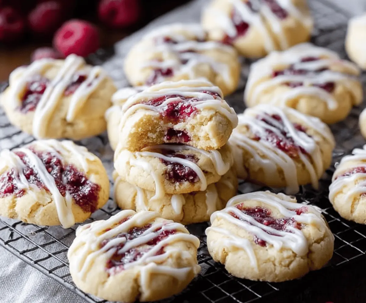 - Let the cookies cool completely before drizzling to prevent the icing from melting into the jam.