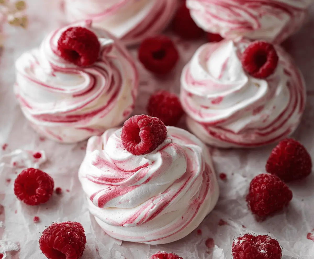 When they are cooled, gently peel the meringues off the parchment paper. You can garnish them with fresh raspberries for a lovely touch just before serving!