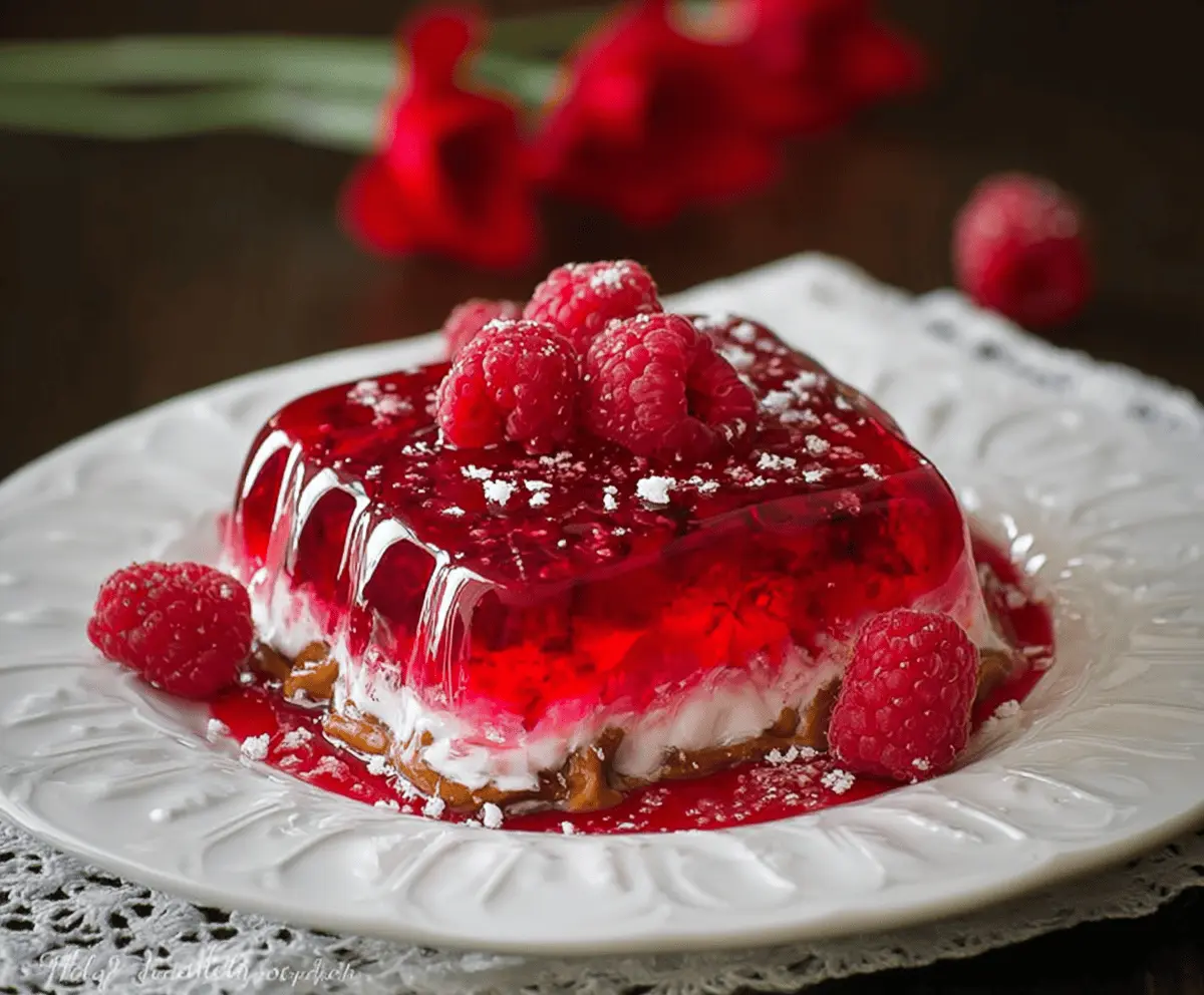 This Raspberry Pretzel Jello dessert is a fun mix of flavors and textures! Crisp pretzel crust, creamy filling, and fruity raspberry jello come together for a treat that’s hard to resist.