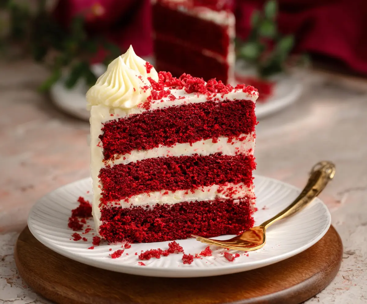 This red velvet cake is a fun treat with its bright red color and fluffy cream cheese frosting. It’s soft, moist, and perfect for celebrations—just like adding a pop of color to your day!