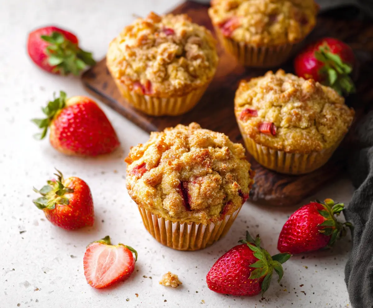 These Rhubarb Strawberry Muffins are a tasty treat! The mix of tart rhubarb and sweet strawberries makes each bite feel like spring. They’re soft, fruity, and smell amazing while baking!