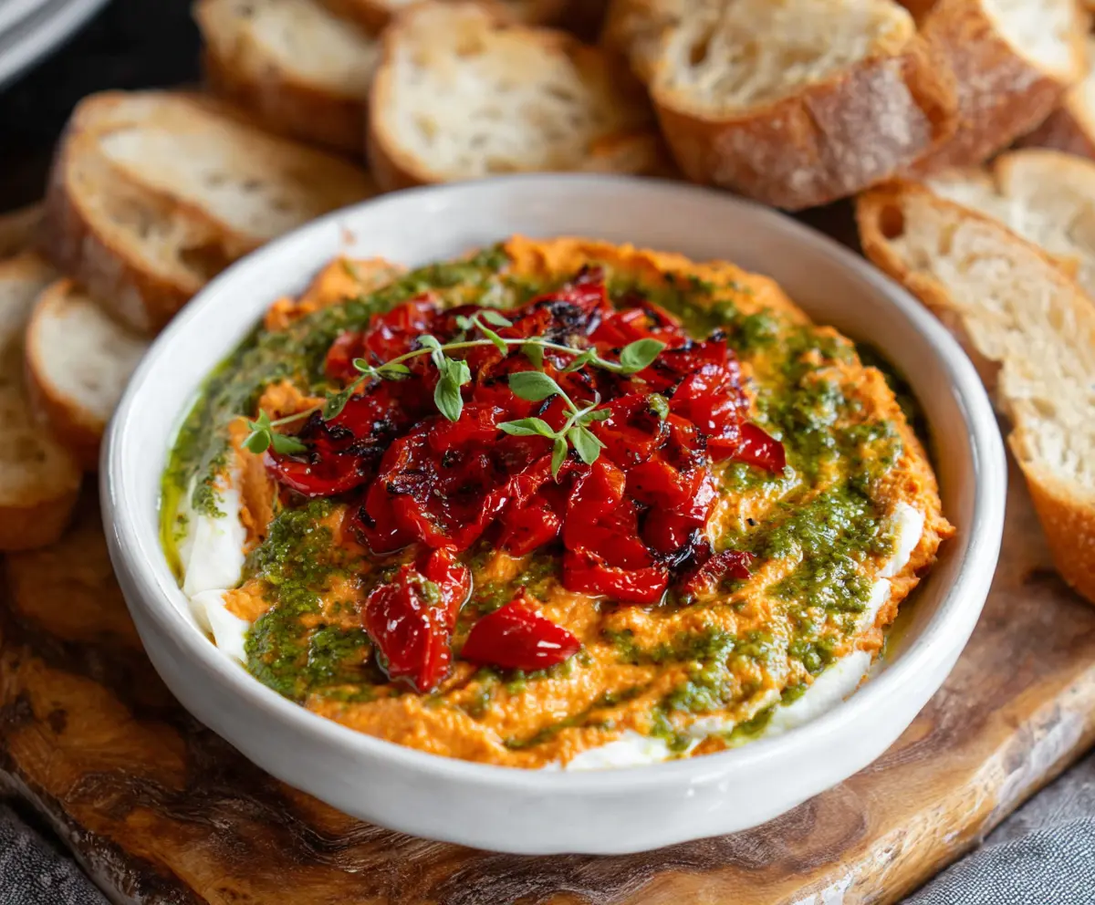 Roasted Red Pepper Goat Cheese Pesto Dip