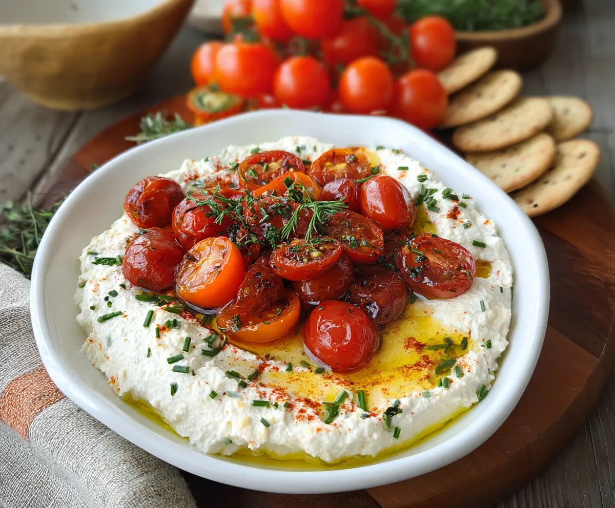 This dish is a fresh delight with creamy whipped cottage cheese and juicy tomatoes. It’s perfect as a snack or a light meal that feels fancy without the fuss!