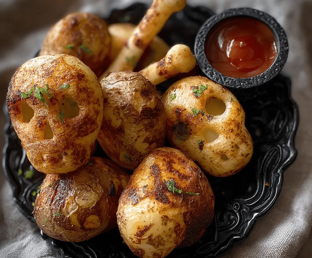 These spooky Skull Potatoes are not only fun but also delicious! Made with creamy mashed potatoes shaped like skulls, they come alive on your dinner table. Add in crunchy Bone Breadsticks for a ghoulish touch!