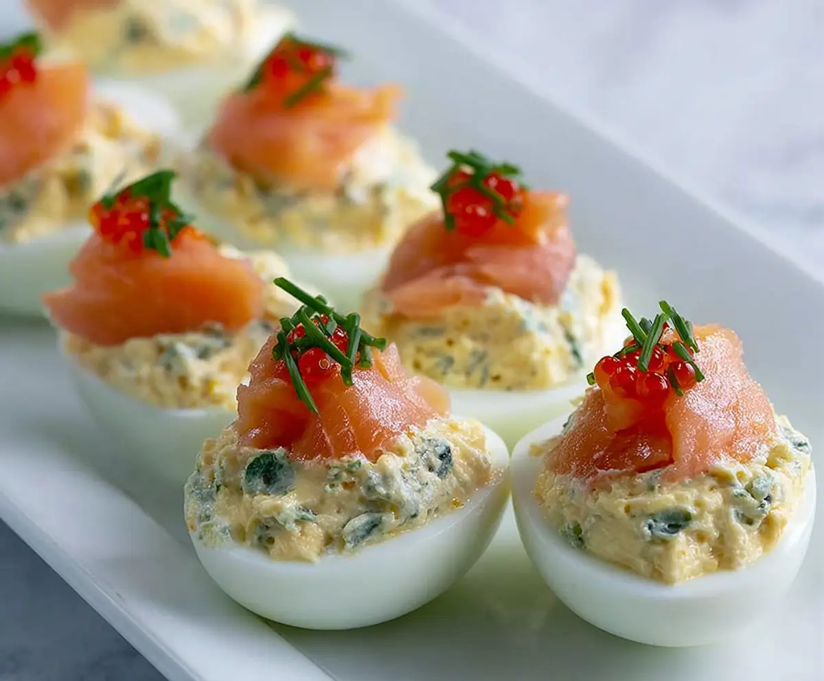This recipe beautifully combines a creamy yolk filling with the smoky flavor of salmon and fresh herbs, making for an elegant and delicious appetizer that’s perfect for any occasion. Enjoy!